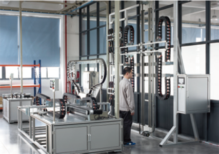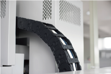 在CSB®工厂内部同步进行实用测试的还有竖直安装在加工中心中的C02.35通用型电缆拖链以及水平安装在FWB纤维缠绕设备中的C02.25通用型塑料拖链,在CSB®工厂内部每天运行1000个循环以上。