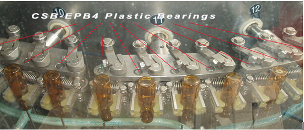 工程塑料:制药机械中洗瓶机作为洗灌封联动机组中首要的组成部分具有非常关键的作用,洗瓶机质量的好差直接影响到后面连带的灌装机和封口机的正常运转;而洗瓶机关键部位为装有自润滑的洗瓶夹钳,洗瓶夹钳需要长期与清洗液接触且必须确保每次精准的夹持和翻转的定位,这就要求自润滑确保能在清洗液中长期工作不会出现转动不灵活的现象,而且能确保长期工作耐磨损精确传动;EPB4工程塑料以其出色的耐腐蚀性能和高耐磨性能在洗瓶机夹钳转动部位成为独一无二的选择。
