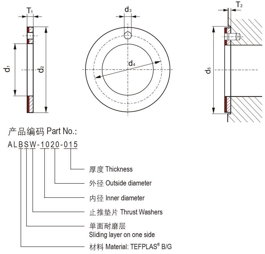 标准基体材料为轻质高强度铝合金,当应用于有耐腐蚀性要求比较高的场合建议采用不锈钢基体与TEFPLAS® G作为耐磨层材料;