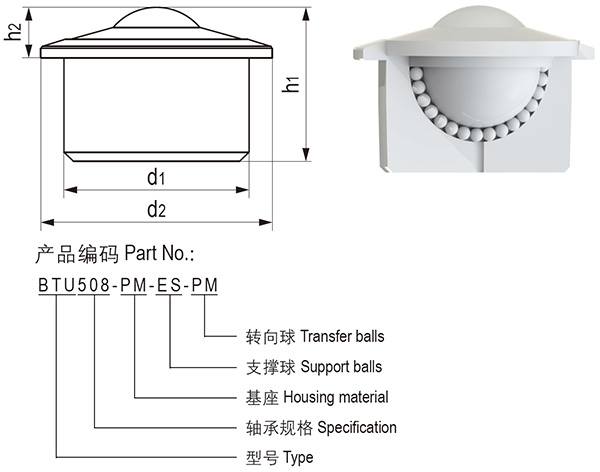 塑料万向滚珠与钢制相比具有不导电、耐酸碱液、无需润滑、免维护、低摩擦、重量轻(最多可减少70%)、适用于真空或压力、盐水-证明,根据材料选择不含金属成分,运输玻璃等易碎物品,可用于爆炸性环境和无菌区域(例如医疗技术),可定制设计。