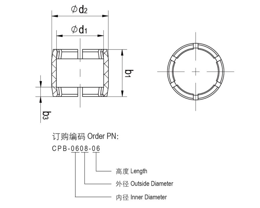 CPB无间隙预紧塑料能被较小的压力压入到配合座孔中。标准座孔推荐H7公差,标准轴推荐h9公差。