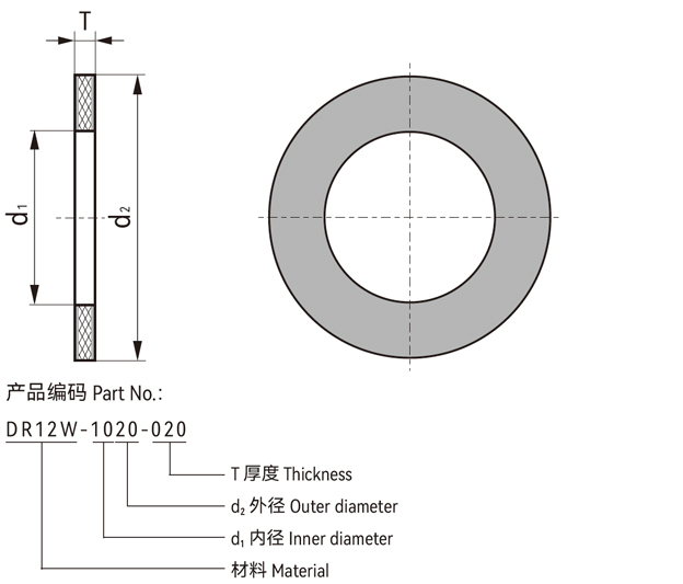 DR12 耐磨垫片由三层组成,结合了低摩擦与高承载特性的滑动层和高强度玻璃纤维填充的中心承载层;