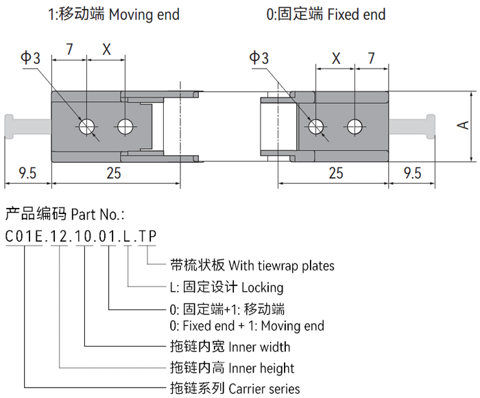 *A1|A2|A3|A4订购预装配拖链请注明安装方式