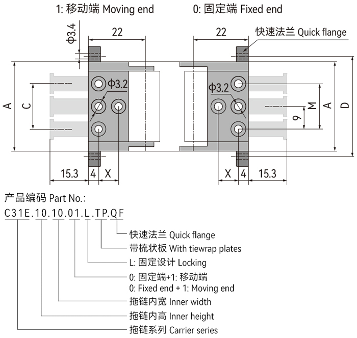 *A1|A2|A3|A4订购预装配拖链请注明安装方式