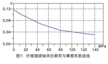 缠绕的摩擦系数为0.03~0.12,影响摩擦系数的主要因 素有承载、运动方式、速度以及相配轴的表面粗糙度等。 图1显示了缠绕在PV旋转载荷下的摩擦系数随着载荷的 升高而降低。