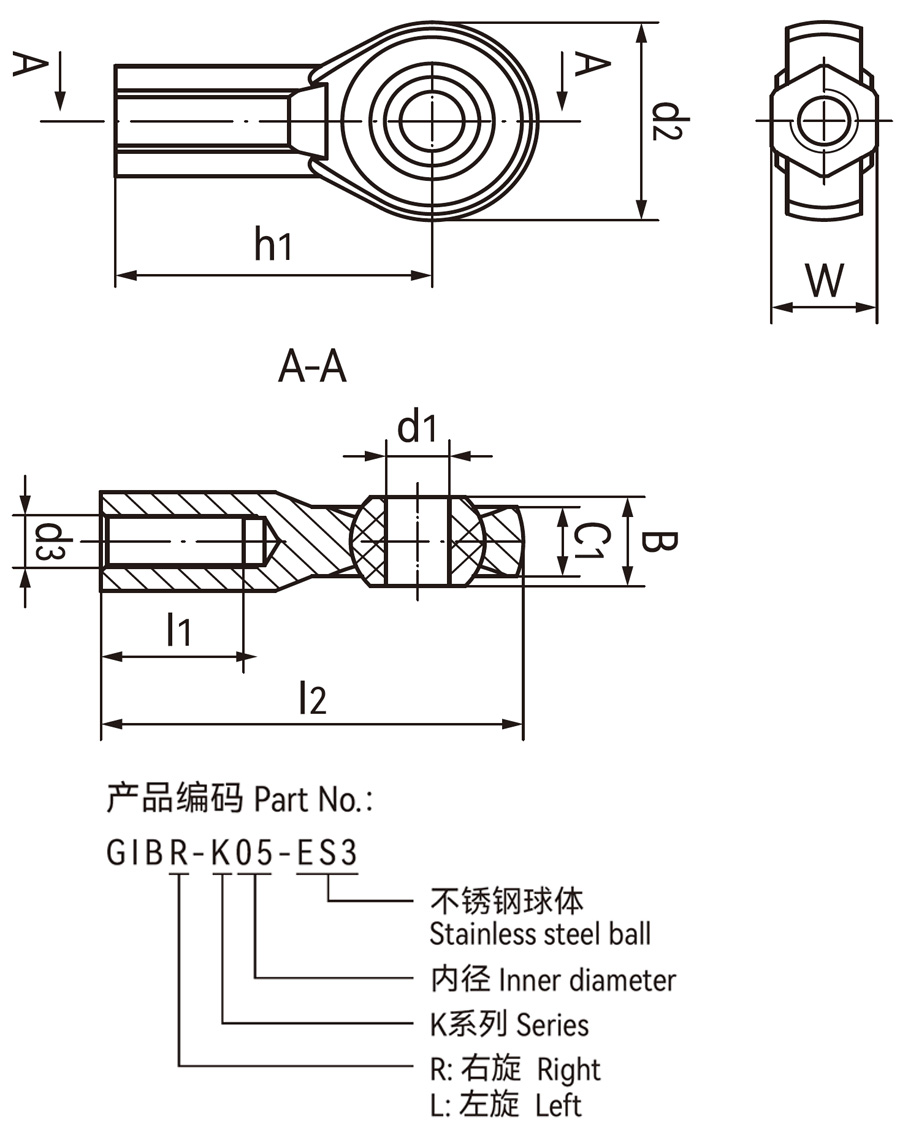 产品编码 | 最大静态抗拉强度 | 最大径向静态负荷 | 球体最大扭矩 | 重量 | ||