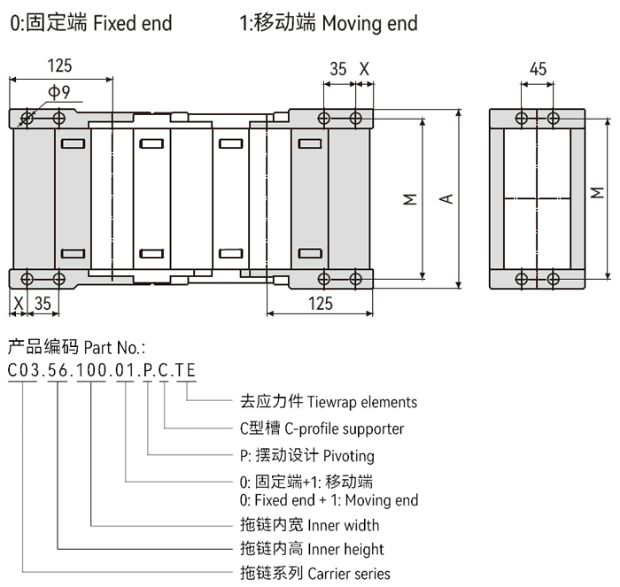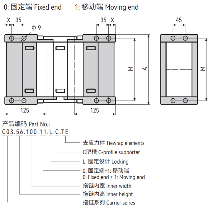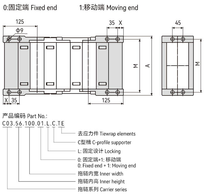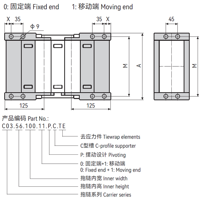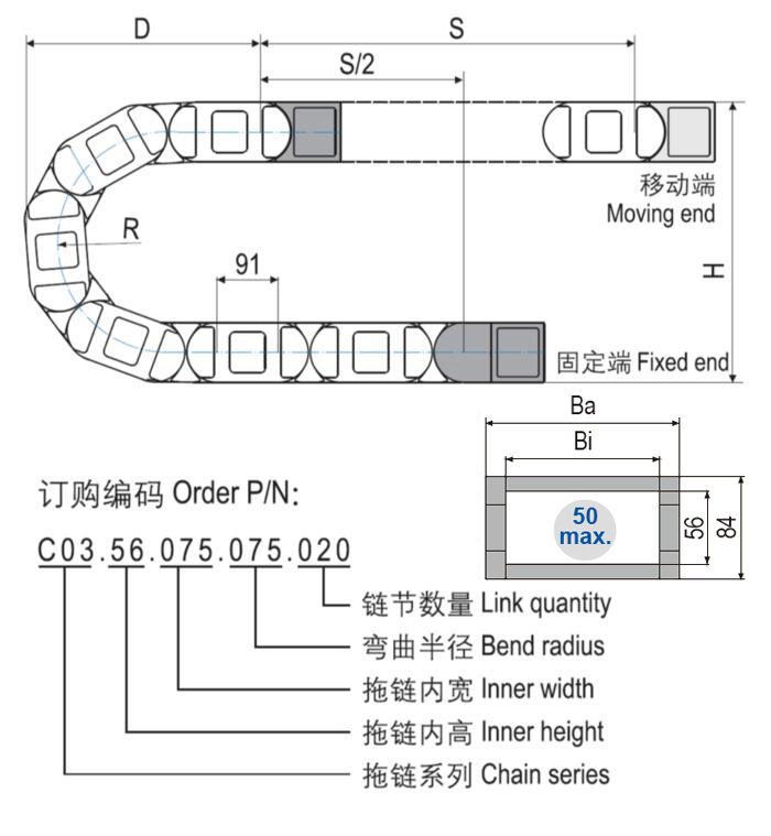 C03.56重载型塑料拖链结合了电缆拖链之前所有的优点,是所有DURAMOV®塑料拖链中最好的。在与其它系列塑料拖链具有相同或更小尺寸的情况下,具有更好的稳固性。使用C03.56重载电缆拖链成本更低,寿命更长