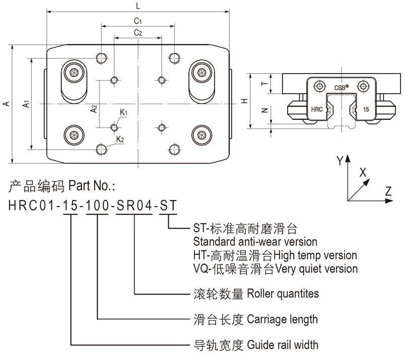 ● 安装螺纹孔与标准滚珠滑块保持一致