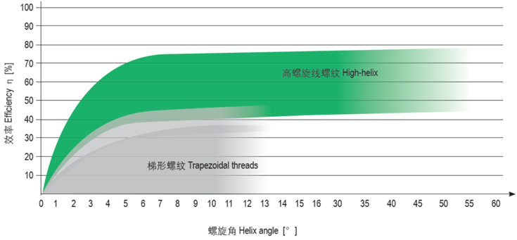 效率是输出功率与输入功率的比值。CSB-LIN®导向螺母具有低摩擦系数,因此有很高的效率。