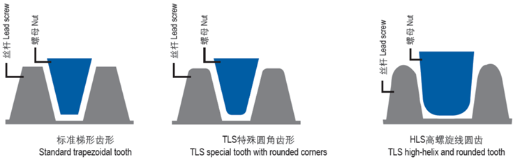 CSB-LIN® 高螺旋线丝杆和螺母采用了较平坦的螺纹角度,驱动力有效地转换为平移运动,与标准梯形螺纹角度相比具有较低的功率损耗。由于圆齿几何形状,在无润滑运动过程中噪音和振动均减轻。