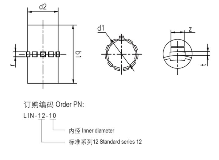 | 产品编码 | 轴径 [mm] | D H7 [mm] | B h10 [mm] | r+0.5 [mm] | t+0.05 [mm] | Z+0.2 [mm] | ![]() |