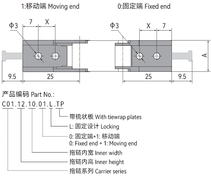 *A1|A2|A3|A4订购预装配拖链请注明安装方式