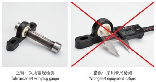 CSB-BAL标准塑料关节球体内径公差采用E10标准,轴公差为h6至h9之间。内径检测采用塞规检测而不可以采用游标卡尺检测。如您需要更高精度或其它公差的请联系我们。
