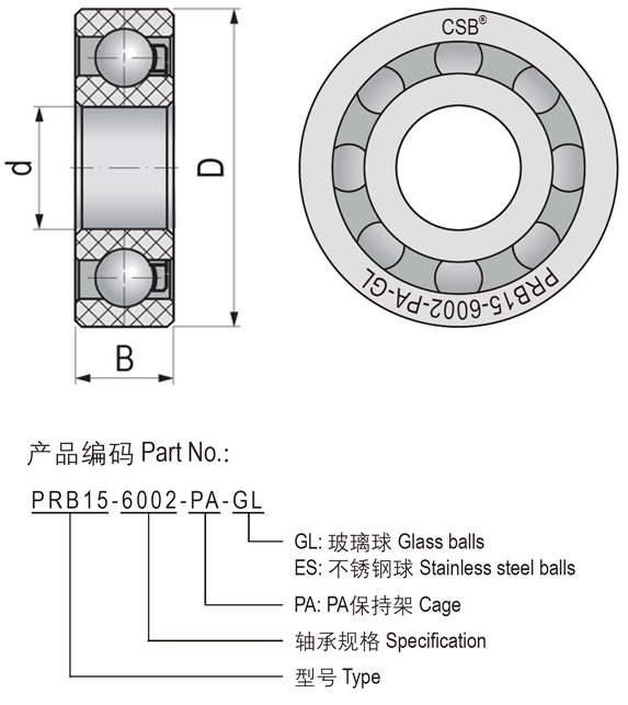 标准配置内外圈材料:改良PET,保持架材料:改良PA,滚珠材料:玻璃-GL或不锈钢-ES;