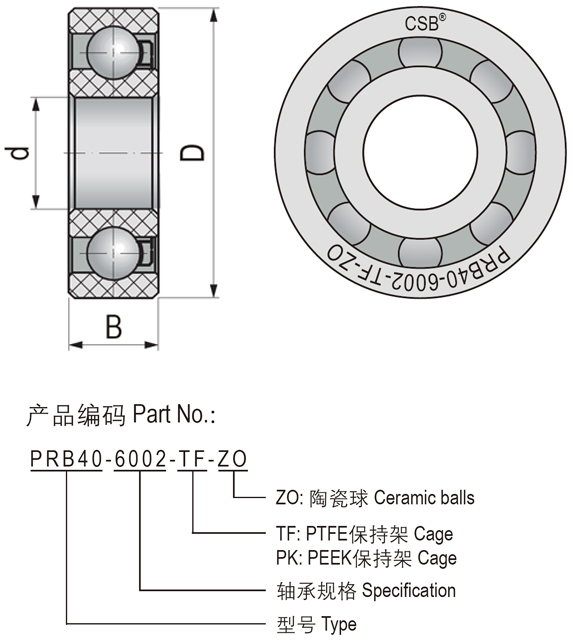 PRB40系列陶瓷滚动具有耐高低温、高承载以及较好的抗腐蚀性能;