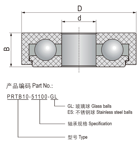 标准配置内外圈材料:改良POM,滚珠材料:玻璃-GL或不锈钢-ES;