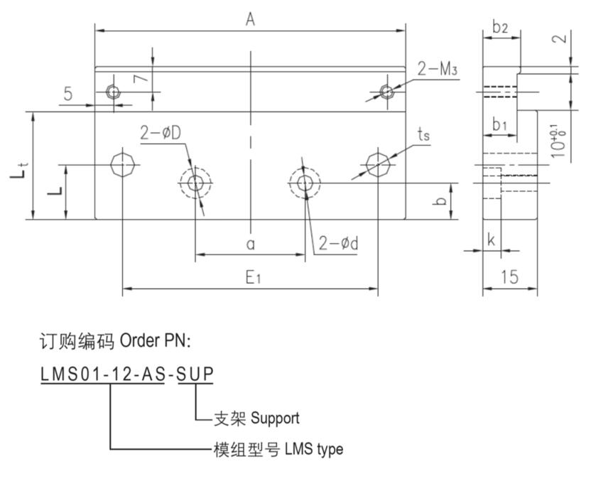 模组支架用于E系列模组提升安装高度,并为限位开关提供匹配的安装尺寸...