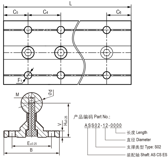 ● 窄矮型设计铝支撑;● 交货范围不包括安装螺丝;● 轴材料:AS精密铝轴,CS精密硬铬钢轴;