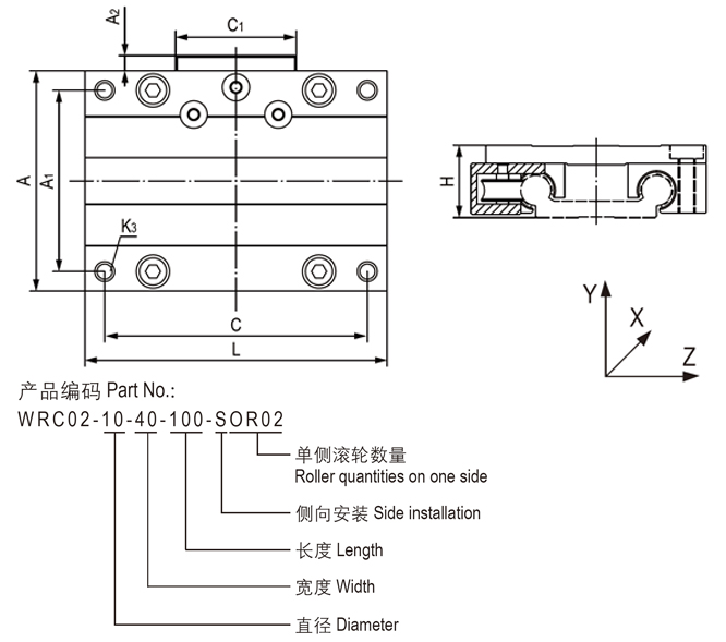 ● 配合WR02导轨侧向安装